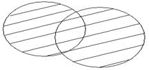 Если изобразить множества А и В при помощи кругов Эйлера, то объединение данных множеств изобразится заштрихованной областью.