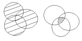 Заметим, что, если в выражении есть знаки пересечения и объединения множеств, и нет скобок, то сначала выполняют пересечение, так как считают, что пересечение более «сильная» операция, чем объединение.