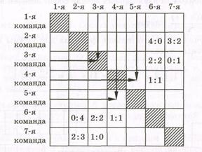 Решение. Рассмотрим таблицу результатов встреч размером 7x7 (рис. 4.4).
