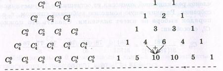 имеется очень красивый и удобный способ записи – в виде треугольной таблицы, ее называют треугольником Паскаля.
