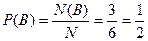 в) Интересующее нас событие В произойдет ровно в трех случаях, когда выпадет число очков 2, 4 или 6. Значит, N(B) = 3 и