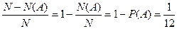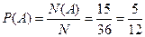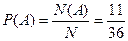 Вроде бы, ответ 6 + 6 = 12. Но один результат (5; 5) мы посчитали дважды. Значит, интересующее нас событие А наступает ровно в 11 из возможных 36 равновероятных между собой исходах, т. е. N(А) = 11, поэтому