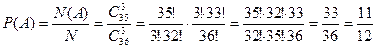 Решение. Из множества в 36 элементов мы производим выбор пяти элементов, причем порядок этих элементов не важен. Значит, возможно получение