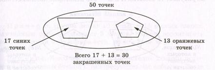 Пример 7. Из 50 точек 17 закрашены в синий цвет, а 13 – в оранжевый цвет. Найти вероятность того, что случайным образом выбранная точка окажется закрашенной.