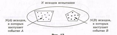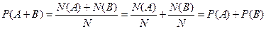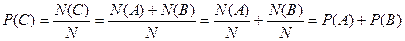 Обозначим буквой С интересующее нас событие. Событие С наступает тогда и только тогда, когда происходит хотя бы. одно из событий А или В. Ясно, что N(С) = N(А) + N(В).