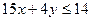 Количество единиц жира, содержащегося в х кг продукта Р и в у кг продукта Q, равно 15 х + 4 у и по условию диеты не должно превосходить 14. Поэтому