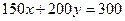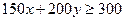 В свою очередь, количество калорий, содержащихся в х кг продукта Р и в у кг продукта Q, равно 150 х + 200 у и должно быть не меньше 300. Значит,