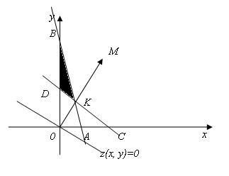 , координатами которого являются соответствующие коэффициенты целевой функции, до места первой встречи этой прямой с треугольником BDK. Искомой точкой будет точка К