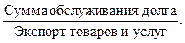 Для анализа внешнего долга целесообразно сопоставить его величину с валютной выручкой от экспорта товаров и услуг, т. е.