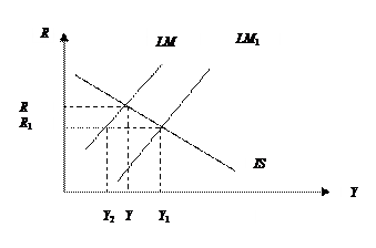 мала, что достигается при высокой чувствительности спроса на деньги к доходу и низкой к ставке процентам).