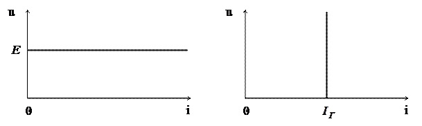 В соответствии с определением ВАХ идеальных источников постоянного напряжения и постоянного тока имеют вид, показанный на рис.1.3.