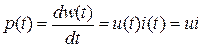 - мгновенная Мощность, которая тратится в электрической цепи при прохождении в ней тока i под влиянием напряжения u.