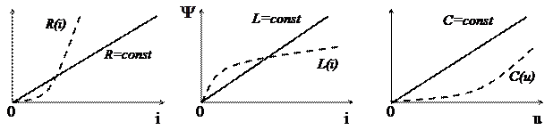 Итак, индуктивность - это частица от деления потокосцепления катушки на ток, который его предопределяет. Индуктивный элемент характеризуется вебер-амперной характеристикой. Это - зависимость потокосцепления элемента электрической цепи от тока в ней (рис.1.6б). Зависимость при L = const соответствует линейному индуктивному элементу; если L = L(t) или L = L(i) имеем нелинейную и параметрическую индуктивность соответственно.