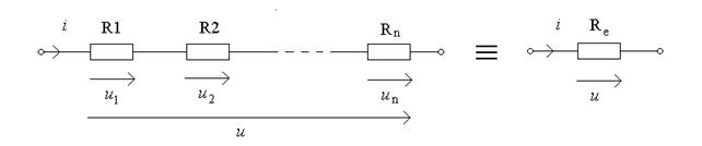 1. Последовательное соединение элементов цепи - соединение нескольких элементов, по которым в них проходит один и тот же ток (рис.2.4).