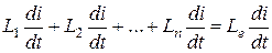 Рассмотрим Последовательное соединение n индуктивностей (рис. 2.4б). Рассуждая аналогично, будем иметь: