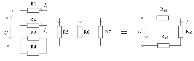 Метод эквивалентных преобразований. Преобразования носят название эквивалентных, если при изменении одной части схемы на другую, более простую, токи и напряжения в части схемы, которая не была преобразована, остаются неизменными.