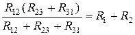 , которые образовывают между узлами 1-2-3 треугольник ребер. Определим сопротивления