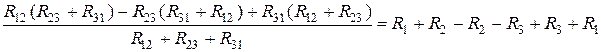 Итак, сопротивление стороны треугольника, близлежащей к двум узлам, равняется сумме ребер лучей звезды, близлежащих к тем самым узлам, плюс произведение этих ребер, разделенных на сопротивление противоположного луча звезды.