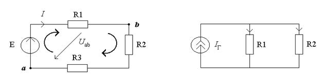 Рассмотрим понятие одноконтурной (pис.3.3а) и двухузловой схемы (pис.3.3б). Эти схемы характерны тем, что имеют один контур и один независимый узел соответственно.