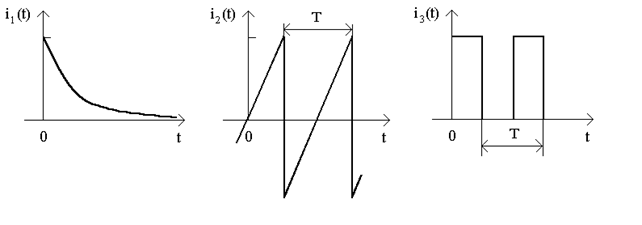 На рис.7.1 изображено временные диаграммы мгновенных значений тока, значение которого изменяются со временем. Вторая и третья диаграммы соответствуют периодическому току.