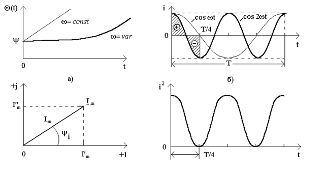 , то как начальная фаза используется абсциссса ближайшего положительного максимума (рис.7.3а). Рис.7.3б показывает соотношение начальных фаз при синусоидном и косинусоидном формах записи: