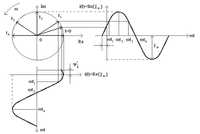 видим, что синусоидная функция i (t) может рассматриваться как мнимая часть (7.2) или как проекция вектора