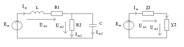 Сделаем качественный анализ электрической цепи синусоидного тока на примере схемы (рис.10.1а). Перейдем к эквивалентной схеме (рис.10.1б), где сделаны обозначения