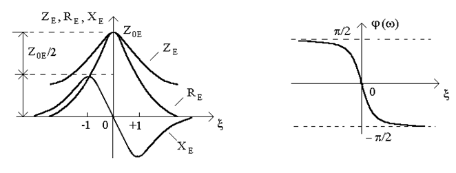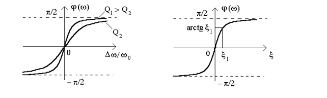 Фазовая характеристика контура также может быть выражена как функция относительной или обобщенной расстройки: