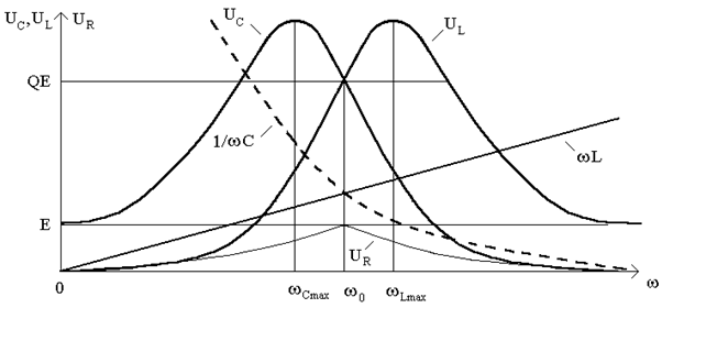 Соответственно, модули полученных выражений являются резонансными кривыми напряжений последовательного резонансного контура: