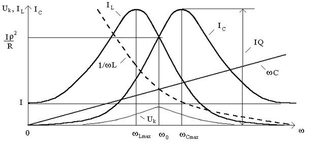 Поскольку действующее (амплитудное) значение токов в ветках контура в Q раз превышает действующее (амплитудное) значение тока в общей ветке, резонанс в параллельном контуре носит название резонансном токов.