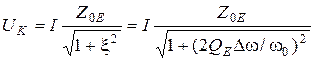 Перейдем от полученных выше частотных характеристик входного сопротивления (13.3) к характеристике напряжения на контуре. Будем считать, что действующее значение тока, который питает контур, неизменно: I = const. Такая ситуация эквивалентна питанию контура генератором тока (