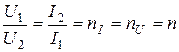Смена напряжений и токов в трансформаторе характеризуется коэффициентами трансформации по напряжению и току: