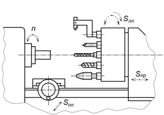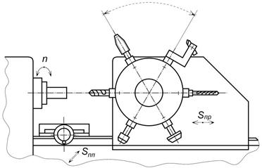 Токарно-револьверные станки с многогранной головкой дополнительно имеют еще один-два (передний и задний) поперечных суппорта. На суппортах в резцедержателях закрепляют инструменты, работающие с поперечной подачей - подрезные, фасонные, канавочные, отрезные и т.п. резцы. В револьверной головке закрепляют проходные и расточные резцы, работающие с продольной подачей; и инструменты, работающие с осевой подачей - сверла, зенкеры, развертки, метчики. В станках с круглой револьверной головкой все инструменты закрепляются только в пазах головки; поперечные суппорты отсутствуют. Револьверная головка имеет возможность медленно вращаться относительно горизонтальной оси, поэтому все виды обработки, которые обычно осуществляют при поперечной подаче инструмента, производят с круговой подачей револьверной головки.