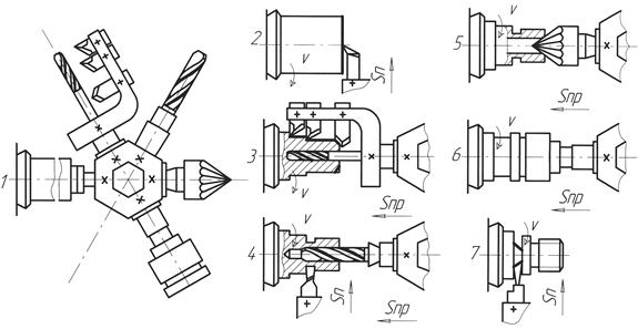 Схема обработки заготовки детали "Штуцер" на токарно-револьверном станке представлена на рис.2.6.
