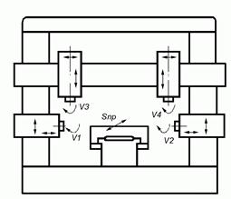 Стол продольно - фрезерного станка вместе с заготовкой (заготовками) обеспечивает продольную подачу, перемещаясь только в продольном направлении по продольным направляющим станины. На двух вертикальных стойках, смонтированных на станине, в ходе предварительной настройки станка устанавливают на нужной высоте левую и правую шпиндельные бабки. По вертикальным направляющим стоек движется траверса, несущая еще две шпиндельные бабки - вертикальные. По мере необходимости для фрезерования наклонных поверхностей некоторые шпиндельные бабки при настройке могут быть повернуты на определенный угол. В процессе работы все шпиндельные бабки зафиксированы в нужном положении и неподвижны. Фрезерные шпиндели при наладке могут перемещаться вдоль своих осей. Конструкция шпиндельных бабок предусматривает возможность работы шпинделей с различными скоростями. Для обеспечения более высокой жесткости станка и, следственно повышения точности обработки, стойки соединены консолью.