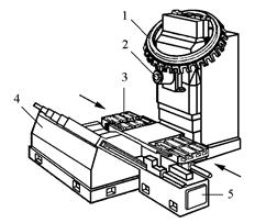 На рис.4.8 представлены соответственно схема компоновки многооперационного фрезерно-сверлильно-расточного станка с револьверной головкой и инструментальным магазином.