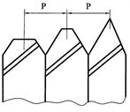 Время нарезания резьбы максимально сокращается при использовании гребёнок за счёт обработки за один проход. Весь удаляемый из впадины металл распределяется между всеми зубьями гребёнки. Для этого вершины зубьев постепенно обнижаются от одного края гребёнки к другому так, что при работе каждый последующий зуб углубляет впадину резьбы (рис.6.6).