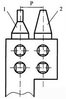 Резьбы трапециевидного и прямоугольного профиля нарезать сложнее, чем треугольного. Общая схема нарезания та же, что для треугольной резьбы. Для повышения производительности обработки при нарезании трапецеидальных резьб с крупным шагом применяют резьбовые блоки с двумя резцами – прорезным 1 и профильным 2 (рис.6.8).