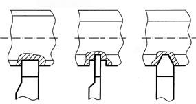 | Рис.6.4. Схема вырезания впадины резьбы резцом при его радиальном врезании | Рис.6.5. Комбинация трех резцов для нарезания резьбы |