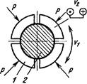 Схема притирки наружной цилиндрической поверхности приведена на рис.7.10, а. Притир 1 представляет собой втулку с прорезями, которые необходимы для полного прилегания притира под действием сил Р к обрабатываемой поверхности по мере ее обработки. Притиру сообщают возвратно-вращательное движение V1 и одновременно возвратно-поступательное движение V2. Возможно также равномерное вращательное движение заготовки 2 с наложением на него движения V2. Аналогичные движения осуществляются при притирке отверстий (рис.7.10, б), однако притир должен равномерно разжиматься действием сил Р. Приведенные схемы осуществляют вручную и на металлорежущих станках.