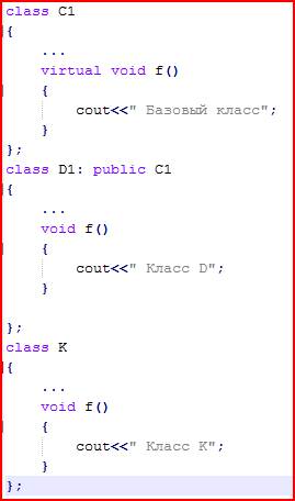 Виртуальная функция – это такая функция, которую можно переопределять в производных классах.