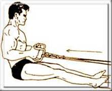 Обратите внимание на то, что ваш корпус должен быть перпендикулярен полу постоянно, подтягивайте рукоятку к животу только силой мышц спины, не раскачиваясь всем корпусом.