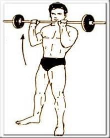 4-ТРАПЕЦИЯ: Взяв штангу или гантели поднимайте только плечами до верхней точки, задержитесь, и начинайте движение обратно(шраги).
