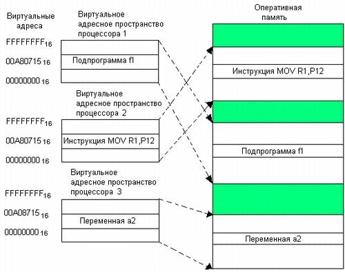 Задачей операционной системы является отображение индивидуальных виртуальных адресных пространств всех одновременно выполняющихся процессов на общую физическую память. При этом ОС отображает либо все виртуальное адресное пространство, либо только определенную его часть. Процедура преобразования виртуальных адресов в физические должна быть максимально прозрачна для пользователя и программиста.