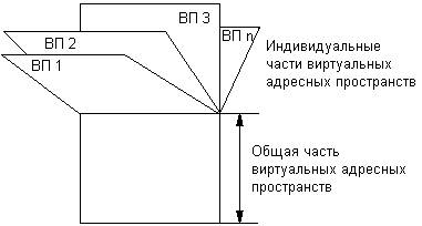 Рис. 5.6. Общая и индивидуальные части виртуальных адресных пространств