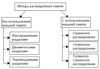 На рис. 5.7 все алгоритмы распределения памяти разделены на два класса: алгоритмы, в которых используется перемещение сегментов процессов между оперативной памятью и диском, и алгоритмы, в которых внешняя память не привлекается.