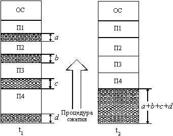 Рис. 2.11. Распределение памяти перемещаемыми разделами