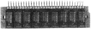 DIP- корпус —это исторически самая старая реализация DRAM. DIP-корпус соответствует стандарту IC. Обычно это маленький черный корпус из пластмассы, по обеим сторонам которого располагаются металлические контакты (см. рисунок B.3.1.).