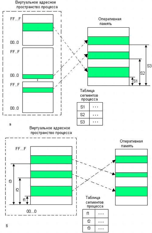 В большинстве современных реализаций сегментно-страничной организации памяти в отличие от набора виртуальных диапазонов адресов при сегментной организации памяти (рис. 5.20, а) все виртуальные сегменты образуют одно непрерывное линейное виртуальное адресное пространство (рис. 5.20, б).