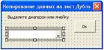 Разработать форму UserForm2 для выделения диапазона или ячейки с элементом управления RefEdit1. Эта форма может использоваться и для копирования данных на другой лист.